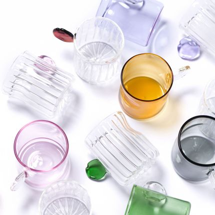 Pop Cups – Set of 2 Handblown Espresso CupsBring a burst of joy to your coffee ritual with Pop Cups, a lively duo of handblown espresso cups crafted using traditional fire-shaping techniques. Each cup is formed individually, giving it its signature squeezed silhouette and a charming rounded glass “pop” handle, created by adding molten color at the final moment of shaping.Because they’re made entirely by hand, no two Pop Cups are exactly alike. Each pair features subtle variations in form and color — a true celebration of artisanal craftsmanship. Available in a fresh palette of tinted and t