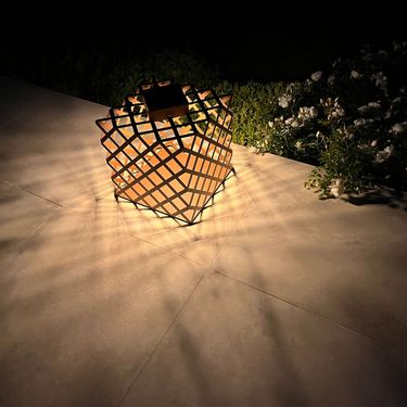 The X When the shadow plays with the light. A solar table lamp composed of a large steel mesh enclosed in a cube with a side of 30 cm. At night, the X projects its shadows, and draws endless intertwined lines on the ground. By day, at any hour, the perception of perspectives is an illusion of reality...