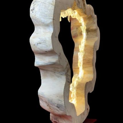 Luminous work in wood, glass and light. From noble materials, French and created in France by the sculptor ARANGO. Woodworking follows the natural shapes of the tree, it can be smooth, or burnt. The light is diffused through hand-cut glass mosaics. It does not cut. The Sculptures are managed by a variator and electronics compatible with all countries. Each piece is unique, numbered and signed. Prices are based on sizes, ARANGO does not issue any prices and only sells to professionals.