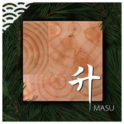 The design, composed of veneer with annual rings, creates a ripple-like appearance.----------MASU is a traditional Japanese wooden measuring box dating back to the 8th century. Once used for rice and sake, it now symbolizes good fortune and prosperity. The word “masu,” meaning “to increase,” conveys wishes for happiness and success to grow.