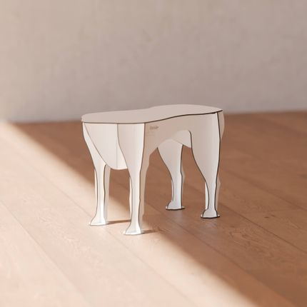 Dog sitting stool. Sultan is a low stool, faithful and nomadic, intended to follow its owner to every corner of the house. The result of a reflection on the emotional bond that binds us to objects, the little dog is the very first born of Company Furniture. Available in six variations: Brushed Black, Matte White, Glossy Red, Glossy Powder Pink, Matte Fern Green, Matt, Brushed Gold. Design Rachel & Benoît Convers - Material: Solid laminate - Made in France.