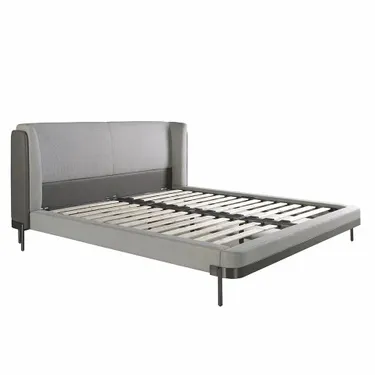 Light grey fabric and dark grey leatherette bed