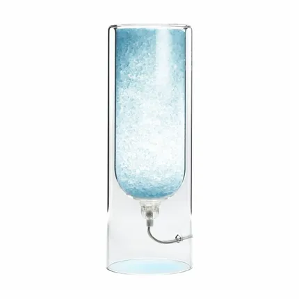 Rocklumìna is a sculptural light object that brings together glass, minerals, and illumination. Crafted in double-wall borosilicate glass without molds, the piece encloses a protected inner glass cylinder that houses the light source, separating function from form. Between the two glass layers, selected Italian rock salt crystals, individually chosen and naturally colored with mineral and botanical pigments, softly diffuse the light. Rocklumìna explores material balance, sustainability, and the quiet presence of light.