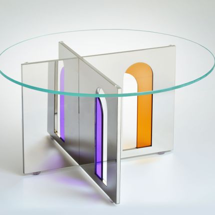A door that leads to infinite others.The geometries of the Itaca coffee tables invite you to a journey without a destination, or rather where encounters, experiences and adventures are themselves the destination. The combination of the mirror steel surfaces and the coloured glass inserts succeeds in blending styling with essentiality, elegance and contemporaneity for a piece able to suggest the pleasure to discover new things or just new forms of things already known.