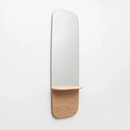 A mirror and a clock, bound by a textile ribbon, become a pendant that can be adjusted around one or more axis. Original and decorative.Choice of ribban colours : navy blue, ivory, yellow or black. 100% solid french oak, from sustainable forests. Designed and made in Anjou (France).