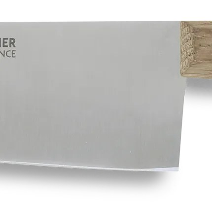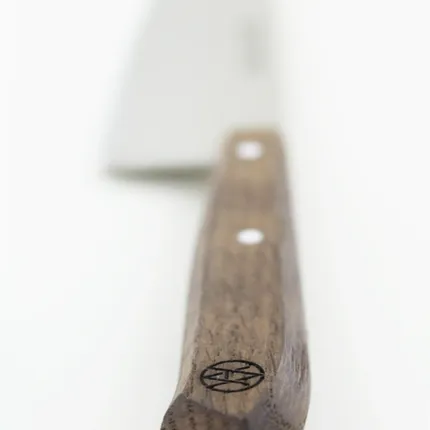 2 mm hardened stainless steel blade. Half-tang. Assembled with 2 rivets. Technical sharpening. Oak handle treated in ecoprocess, water and humidity resistant. 5 pieces available: 15 cm slicing knife, 20 cm slicing knife, 17 cm honeyed santoku knife, 17 cm bread knife and 17 cm fillet knife. 100% made in France.