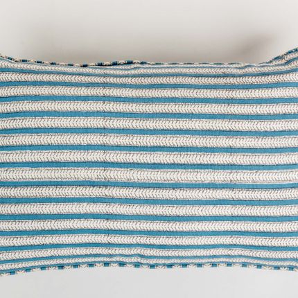 The Jamila collection is a celebration of chintz, once made only in India for the English market. The intricate floral design is being printed in plum, Ladakh blue and pine green for winter and is accented by a delicate feather stripe and solid Ladakh blue cushions.