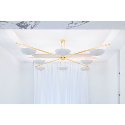 This eight-goblet chandelier honours the great toasts of Prohibition period, rigorously marked by champagne
