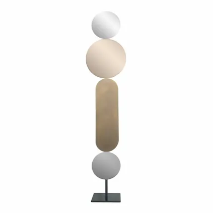 TOOOTEM mirrors were born from the desire to create a nomadic work, both strong and unique. This sculptural totem mirror, over 2 m high, is composed of 4 elements fixed using magnets or screws, which allows you to change the position of the elements of your sculpture as you wish. Additional items can be ordered. The patinated brass elements are made by La Maison Pouenat. Made in France, in the Alps, on order only.