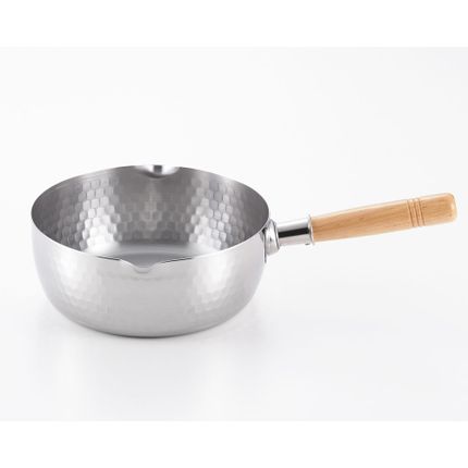 Casserole de 22 cm en acier inoxydable, martelées avec deux becs verseurs - collection Yukihira / YOSHIKAWA