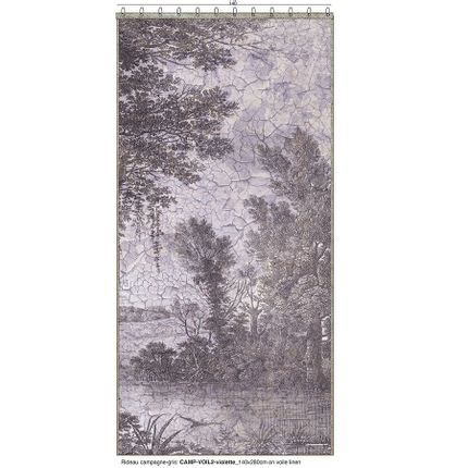 EN FIL D'INDIENNE... CAMPAGNE Voilage N°2 - Panneau droite voile de lin imprimé Ananbô 140x280 VIOLET