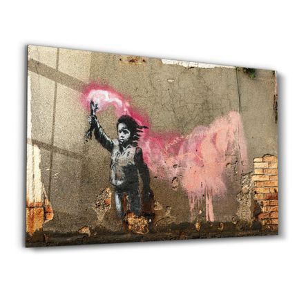 Banksy - Un enfant avec un gilet de sauvetage | Art mural en verre 110CMx70CM