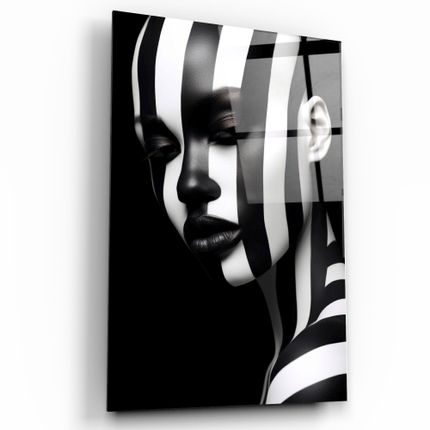 Art mural en verre de la collection du designer noir et blanc 110CMx70CM