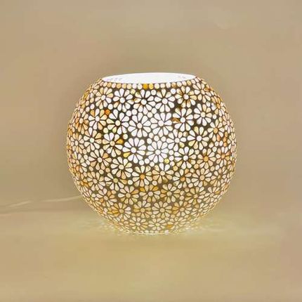 Lampe artisanale ovale de taille moyenne Yellow Daisy en verre mosaïqu