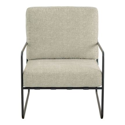 BLANC D'IVOIRE Fauteuil GASPARD déhoussable tissu jacquard de velours sable et métal