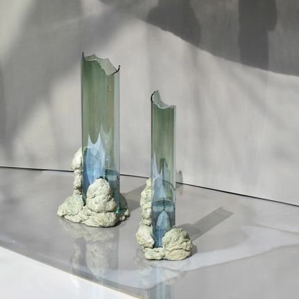 COKI CATHARSIS, Vase sculptural pour fleurs en verre et pierre