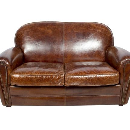 Canapé Club en Cuir Vintage Cigare, Élégance et Confort Indémodables