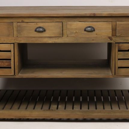 Îlot de cuisine Emerson en bois recyclé, 160 cm, 12 tiroirs, style vintage