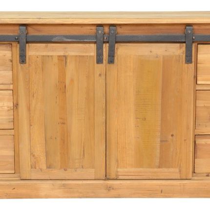 Cabinet Ruston bois recyclé, porte coulissante et tiroirs