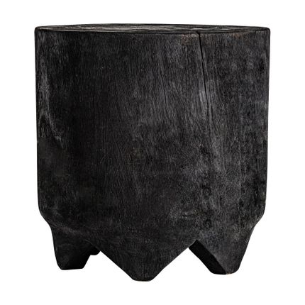 Table basse en bois de suar carbonisé noir vieilli en 50x50x50 cm