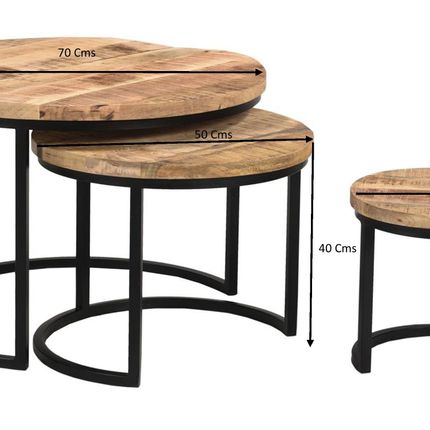 Set de 3 tables basses gigognes en bois de manguier et fer, style industriel