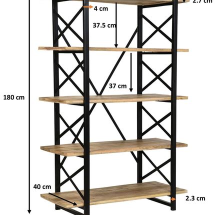 Étagère industrielle bois et fer, 5 étagères, style vintage