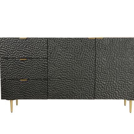 JP2B DECORATION Buffet long en chêne noir embossé, 3 tiroirs, 157x45 cm