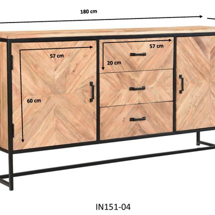 JP2B DECORATION Bas de buffet industriel en bois et fer, 3 tiroirs, 2 étagères