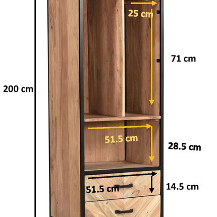 JP2B DECORATION Étagère industrielle en bois et fer, 2 étagères, 2 tiroirs