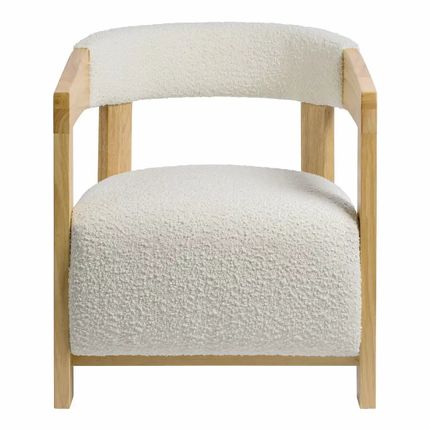 BLANC D'IVOIRE Fauteuil ARSÈNE tissu bouclette crème hévéa finition bois blond 60x66x66