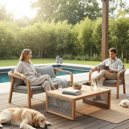 Salon extérieur en teck massif et corde Olefin - SBH3