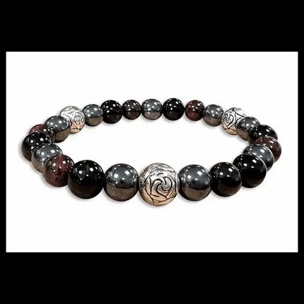 ARABESK Bracelet Tourmaline noire Grenat Rouge Hématite & Charms perles 8mm