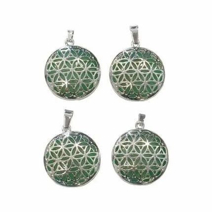 ARABESK Pendentif Métal Fleur de Vie Aventurine Verte A 25mm x4