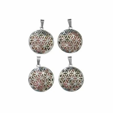Pendentif Métal Fleur de Vie Rhodonite 25mm x4