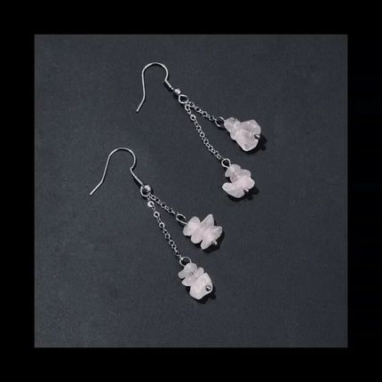 Boucles d'Oreilles Baroque Argentées en Acier Inoxydable Quartz Rose 6cm