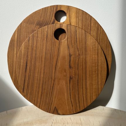 Planche à découper circulaire en teck monoxyle ajourée D:30