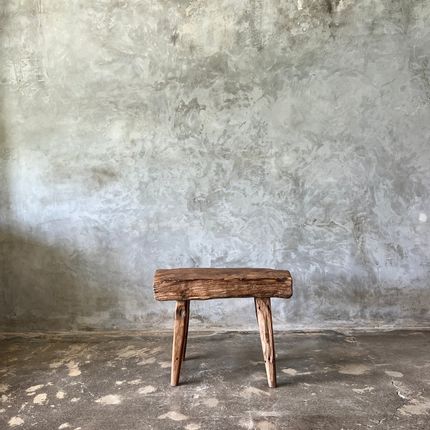 Petit banc organique en teck asiatique blond quadripode - Enam