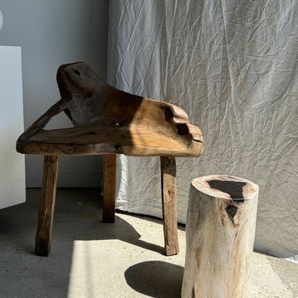 Table d'appoint en bois pétrifié blanc cœur noir H41 D21-24