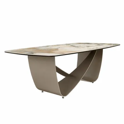 Table basse ovale en marbre porcelaine et acier métallique taupe