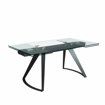 Table à manger extensible rectangulaire en verre trempé et acier noir