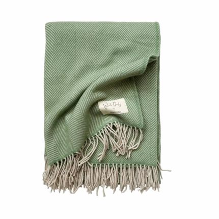 Plaid couverture en laine, Chevrons Menthe Naturel