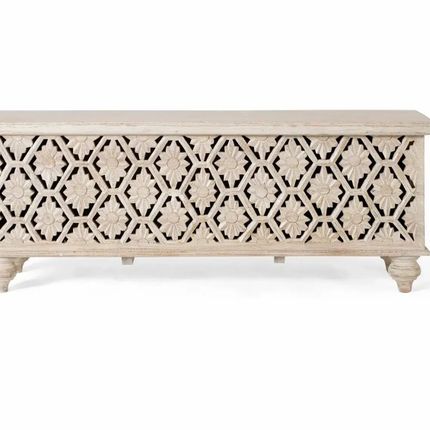 Malle fabriquée artisanalement en bois de manguier avec ouverture