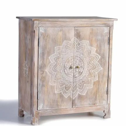 GINER Y COLOMER Meuble bar en manguier blanc vieilli