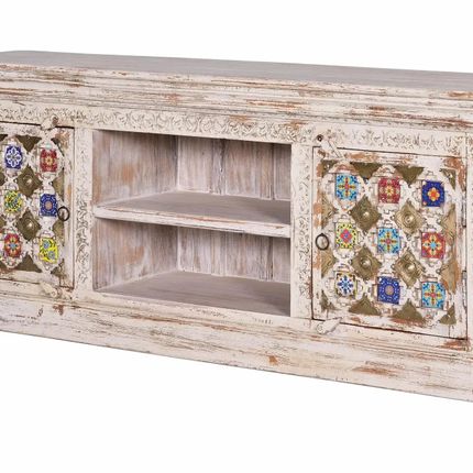 GINER Y COLOMER Meuble tv en bois de manguier avec détails en céramique