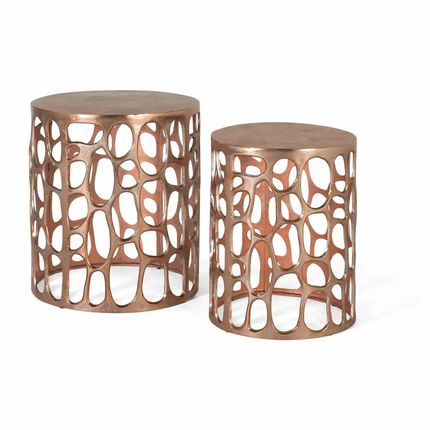 GINER Y COLOMER Lot de 2 tables en métal et finition en cuivre vieilli