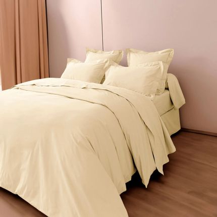 Housse de couette Percale 240 x 220 cm Pur Coton Peigné Longues Fibres 80 Fils/cm² Ivoire