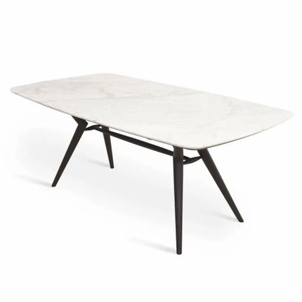 Fusi - Table basse en bois massif avec plateau en pierre blanche