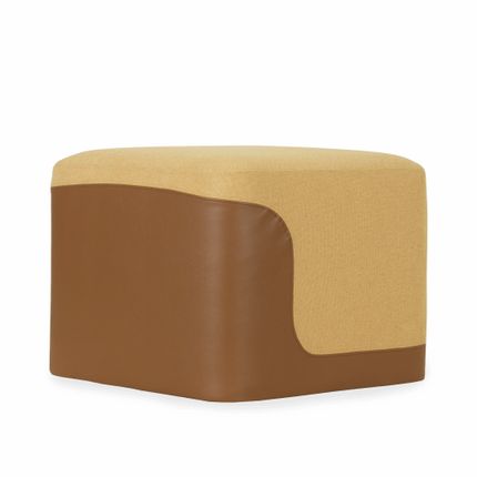 Pouf - Ottoman carré en cuir marron et tissu jaune