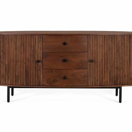 Buffet avec 2 portes et 3 tiroirs en bois d'acacia et pieds en métal