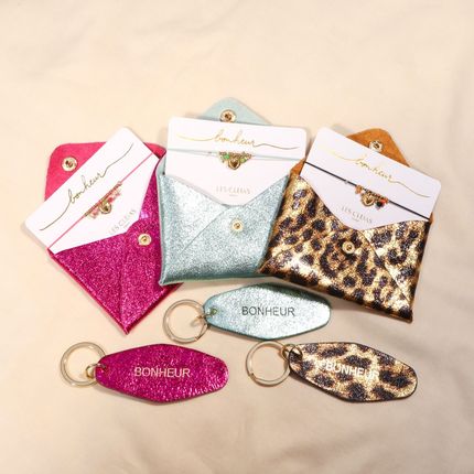 Lot cadeau : pochette, bracelet élastique et porte-clés en cuir